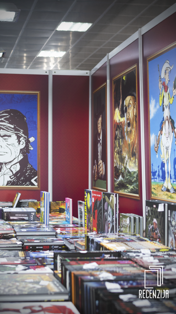 Treći i meni lično najdraži su štandovi Čarobne knjige. Ne znam koliko vas se seća onog sivog golog hodnika sa par postera koji su ranije imali, ali ove godine ne da je u pitanju napredak nego ko da su drugi ljudi preuzeli Čarobnjake. Paneli sa štampom na kojoj su u zlatnim ramovima stajale ilustracije naslovnica sa izdanja najnovije produkcije, stolovi prekriveni materijalom sa teksturom drveta tako da podseća na škrinju, crveni tepih… savršeno. I mogli bi ste reći da je stvar ukusa pa i da vam se ne dopadne izgled štanda ali niko ne može poreći pažnju koja je uložena u samo slaganje knjiga i stripova. Ne znam da li je jedan posetilac propustio da makar zastane i pogleda kako su složeni naslovi Harija Potera, Hiperiona, Rikne Asteriksa i Bluberija… Kapa dole i veliko poštovanje za oba štanda. Naročit bonus su bili stolovi i stolice u pozadinskom delu koji za koje ste mogli da sednete, popričate, popijete vodu sok i prosto iskomentarišete šta vam je volja. Rekla bih da je gostoprimstvo bilo baš izraženo ove godine u ČKu.
