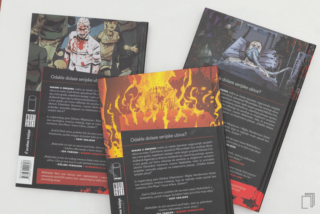 Iako pod jakim uticajem poznatih zločinaca — i stvarnih i izmišljenih, od Dejvida Berkovica do Hanibala Lektora— pisac Džošua Vilijamson pristupa narativu o serijskom ubici iz sasvim drugačijeg ugla. Umesto da ponudi još jednu priču o jurnjavi mačke i miša, on istražuje posledice koje takvo zlo ima po zajednicu koja okružuje ove zločine. Umetnik Majk Henderson kreira uverljive sumorne prikaze oblačnog Oregona. Ipak, ovakav strip ne uzimate u ruke zbog pejzaža. Pogledi na krv, creva i do krvi pojedene nokte samo su zadirkivanje u odnosu na bolesnije stvari koje možete videti kako serijal odmiče.